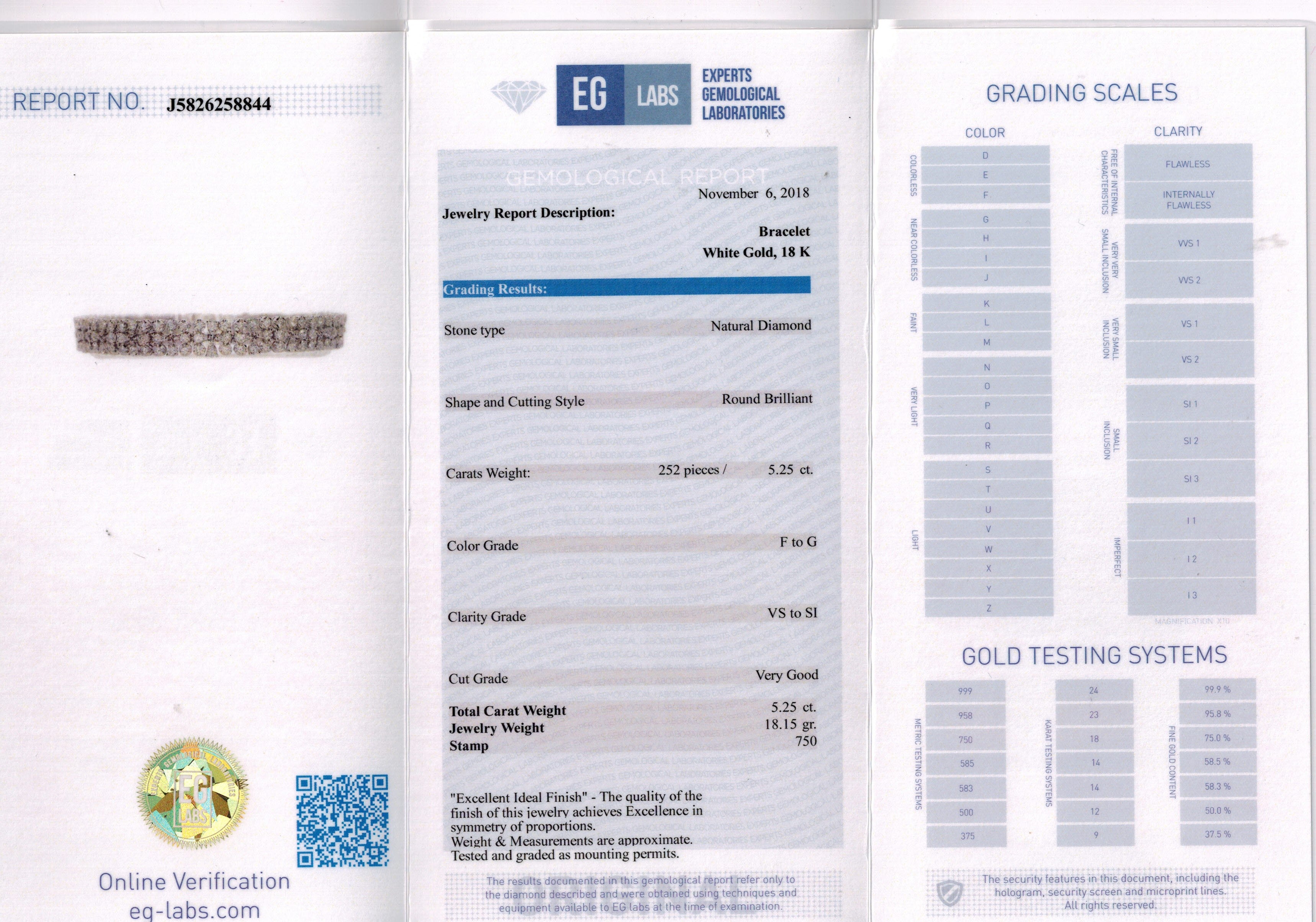 The tennis bracelet is an iconic piece and has become a sparkling jewelry staple. Crafted in 18K whte gold, this triple row diamond tennis bracelet features over 250 scintillating white diamonds. The bracelet is designed with three rows of round white diamonds, placed in four prong settings and arranged in a series of mixed shaped links. This elegant piece is sure to be loved by all who see it and makes for a very special gift.