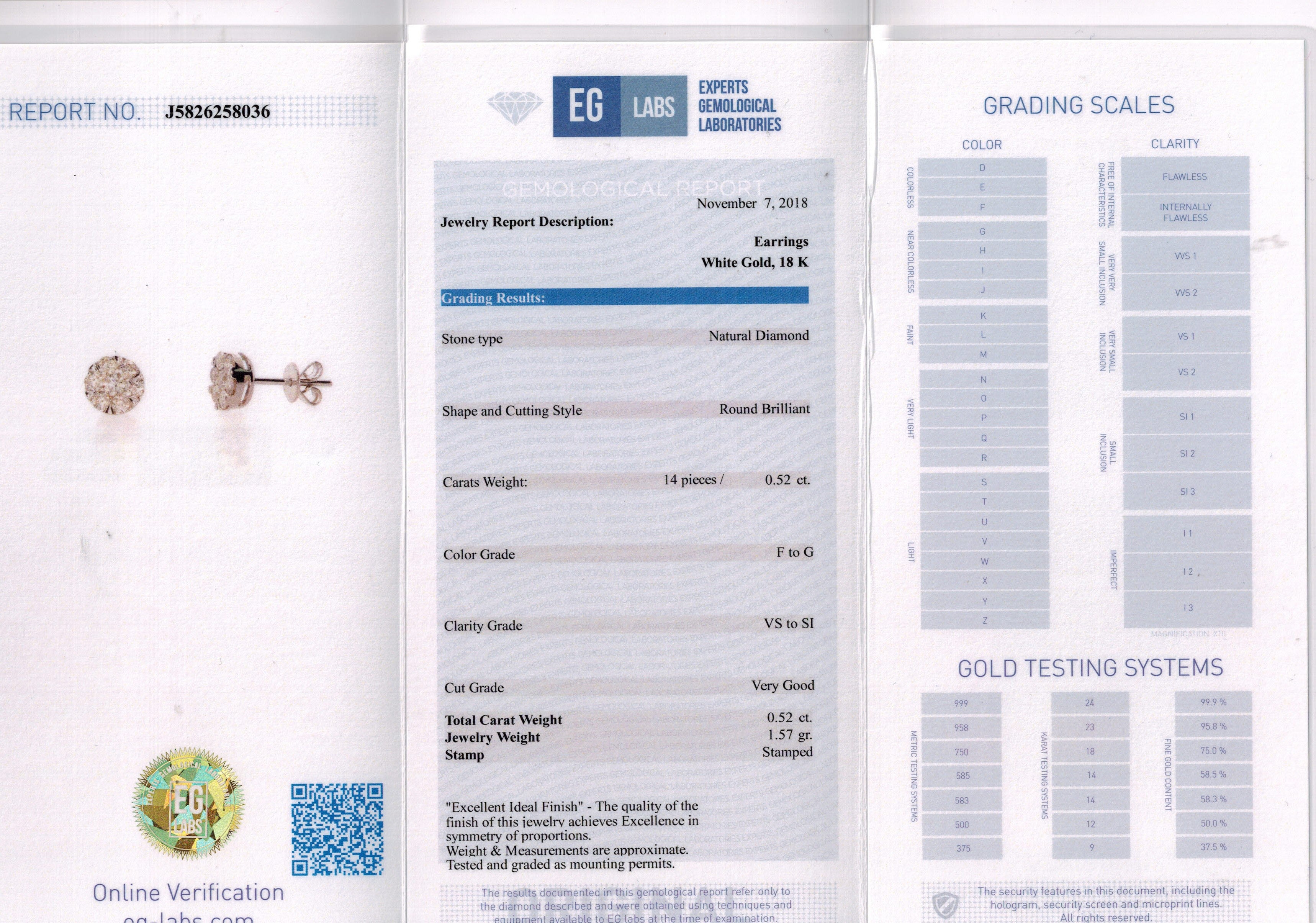Classic and elegant, these diamond stud earrings are a stunning jewelry staple. Created in 18K white gold, these earrings hold 14 round brilliant white diamonds. Fashionably crafted, each earring features a glistening flower-shaped composite of shimmering brilliant cut round diamonds that catches the eye and are secured with friction backs. These earrings make for pretty gift, are are sure to be loved by all who see them.