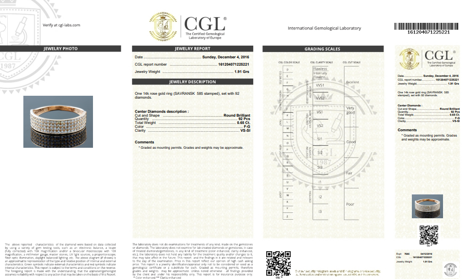 With your purchase, you will always receive a lifetime warranty, two Gemological Certificates- one for the center diamond as well as one for the finished piece, and an APPRAISAL certificate from Savransky Private Jeweler.