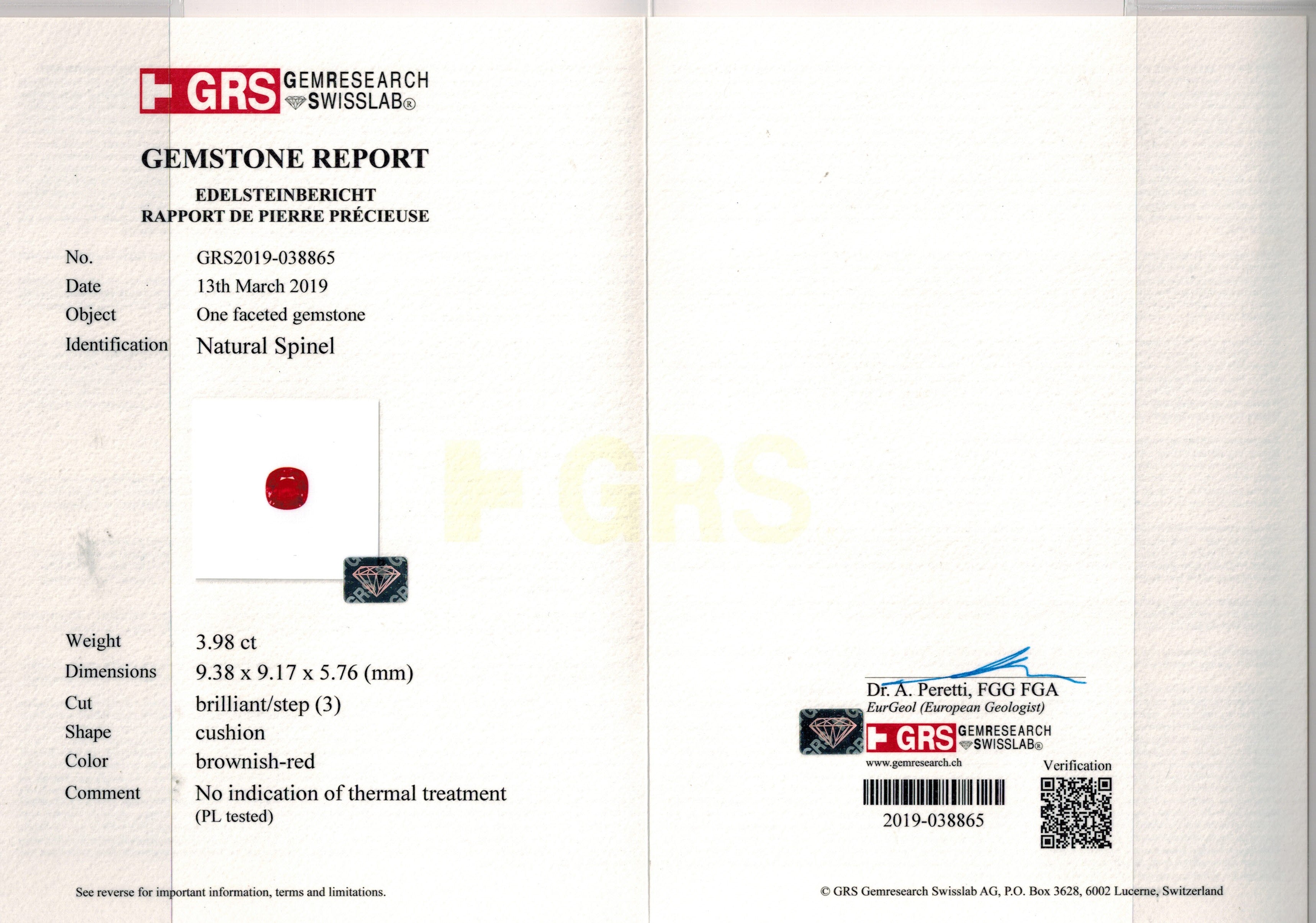 Cushion Cut Red Spinel Ring - 4.4 Carat