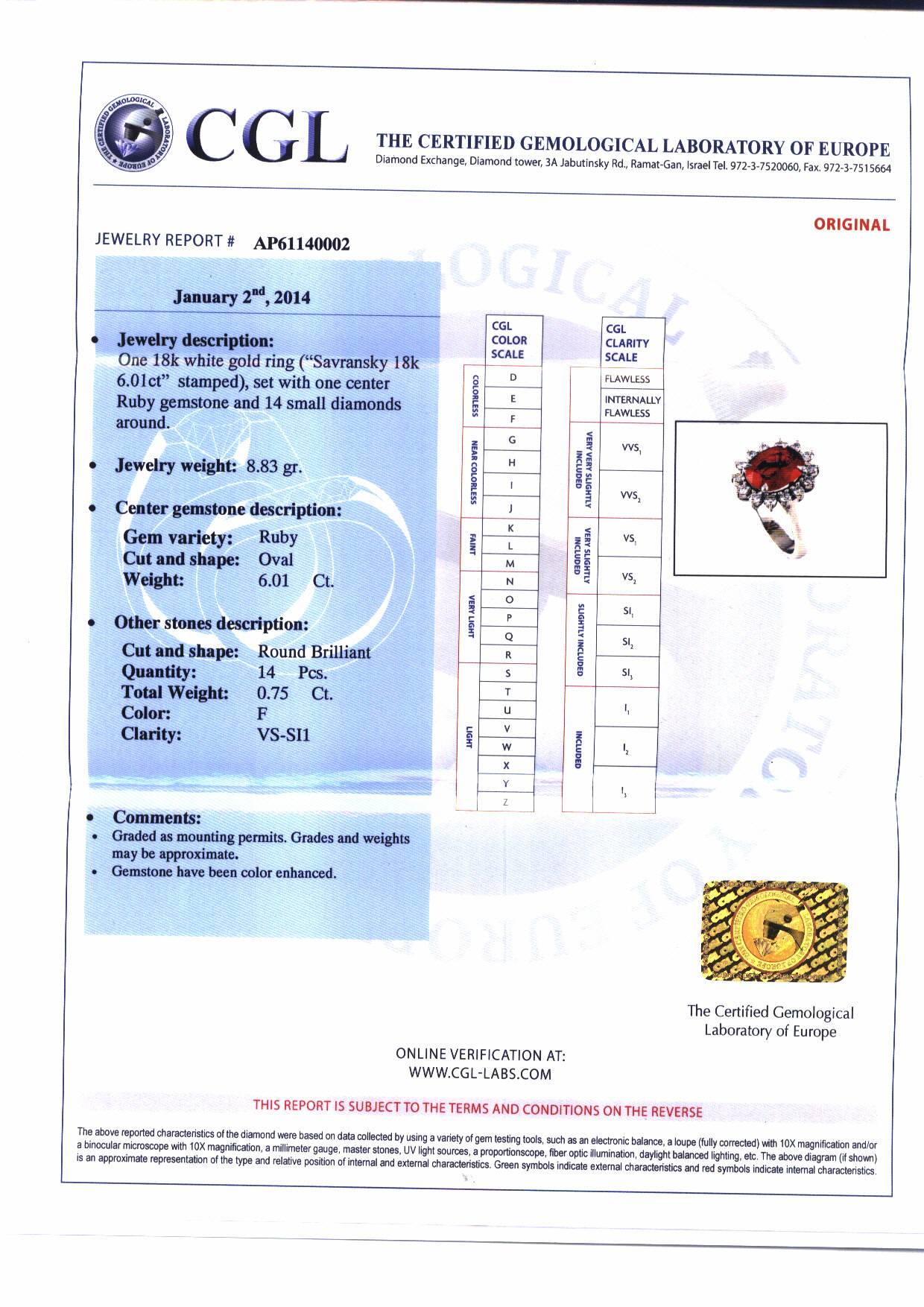 With your purchase, you will always receive a lifetime warranty, two Gemological Certificates- one for the center diamond as well as one for the finished piece, and an APPRAISAL certificate from Savransky Private Jeweler.