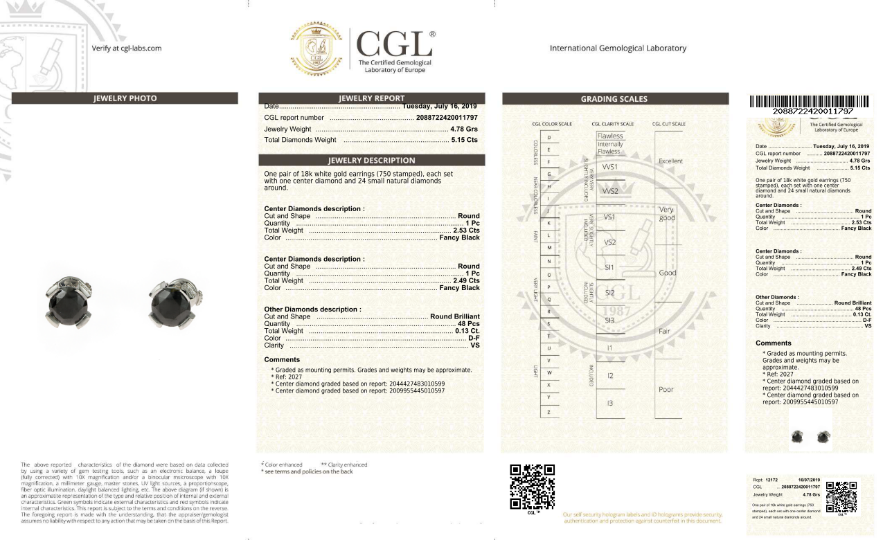 Black Diamond Stud in a Split Bezel Setting - 5.5 Carat