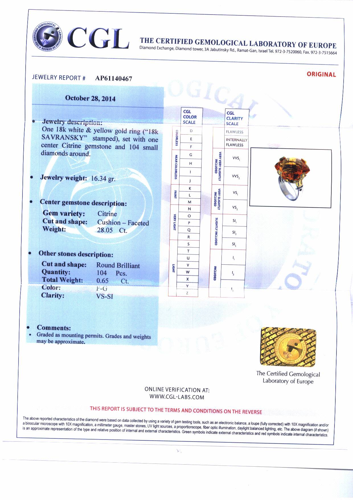 With your purchase, you will always receive a lifetime warranty, two Gemological Certificates- one for the center diamond as well as one for the finished piece, and an APPRAISAL certificate from Savransky Private Jeweler.