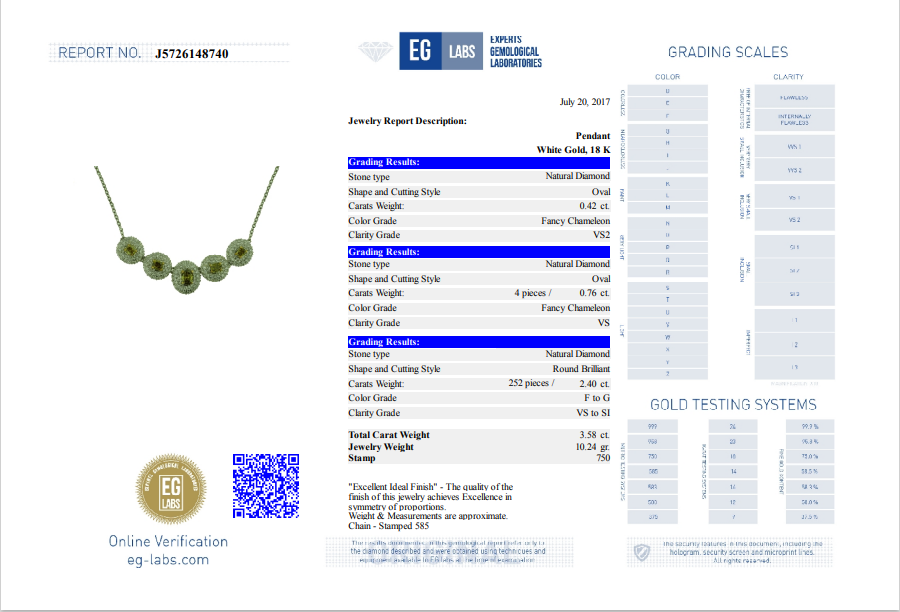 RARE CHAMELEON DIAMONDS NECKLACE 3.58 CARAT