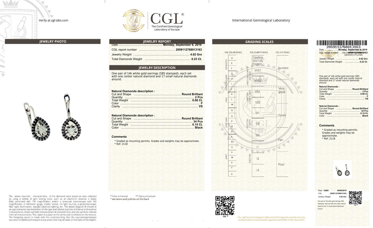 Dress to impress with these eye-catching pear shaped diamond drop earrings. Created in 14K white gold, each earring features a round diamond center stone bordered with a white gold polished teardrop-shaped frames. Surrounding the teardrop frame is a striking pave-lined black diamond halo frame for that finishing touch A fabulous look day or evening, These earrings are sure to be loved by all who see them, and make for a wonderful gift.