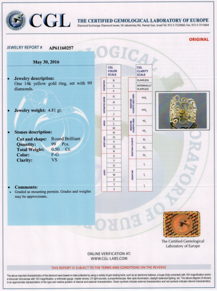 With your purchase, you will always receive a lifetime warranty, two Gemological Certificates- one for the center diamond as well as one for the finished piece, and an APPRAISAL certificate from Savransky Private Jeweler.