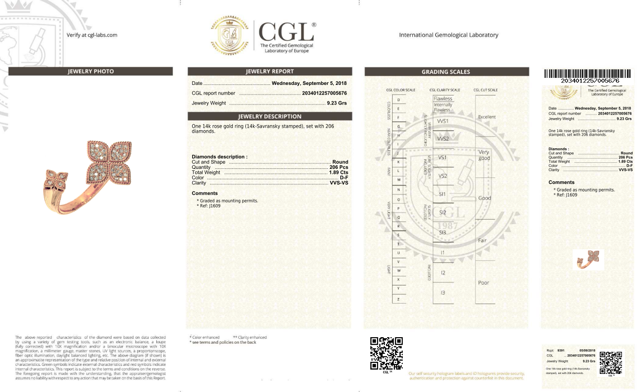 With your purchase, you will always receive a lifetime warranty, two Gemological Certificates- one for the center diamond as well as one for the finished piece, and an APPRAISAL certificate from Savransky Private Jeweler.