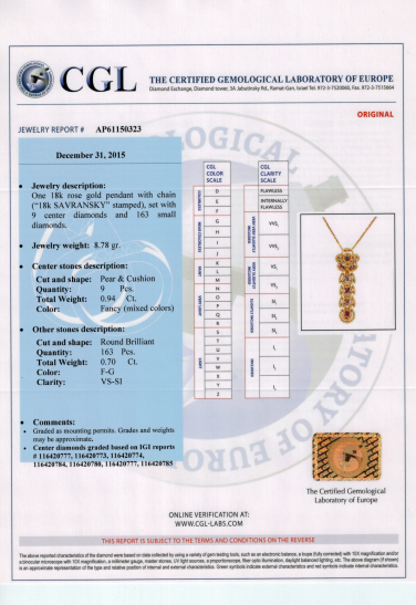 With your purchase, you will always receive a lifetime warranty, two Gemological Certificates- one for the center diamond as well as one for the finished piece, and an APPRAISAL certificate from Savransky Private Jeweler.