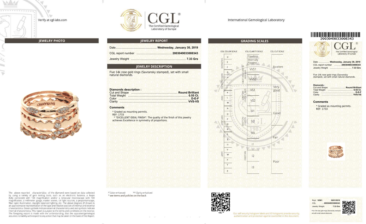 With your purchase, you will always receive a lifetime warranty, two Gemological Certificates- one for the center diamond as well as one for the finished piece, and an APPRAISAL certificate from Savransky Private Jeweler.