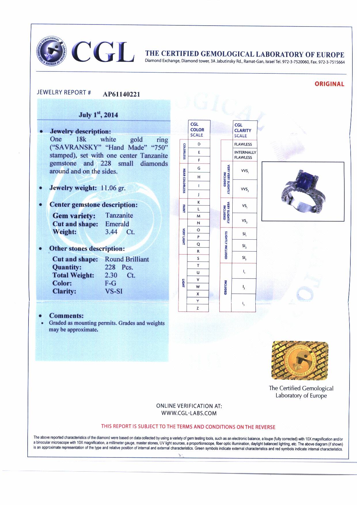 With your purchase, you will always receive a lifetime warranty, two Gemological Certificates- one for the center diamond as well as one for the finished piece, and an APPRAISAL certificate from Savransky Private Jeweler.