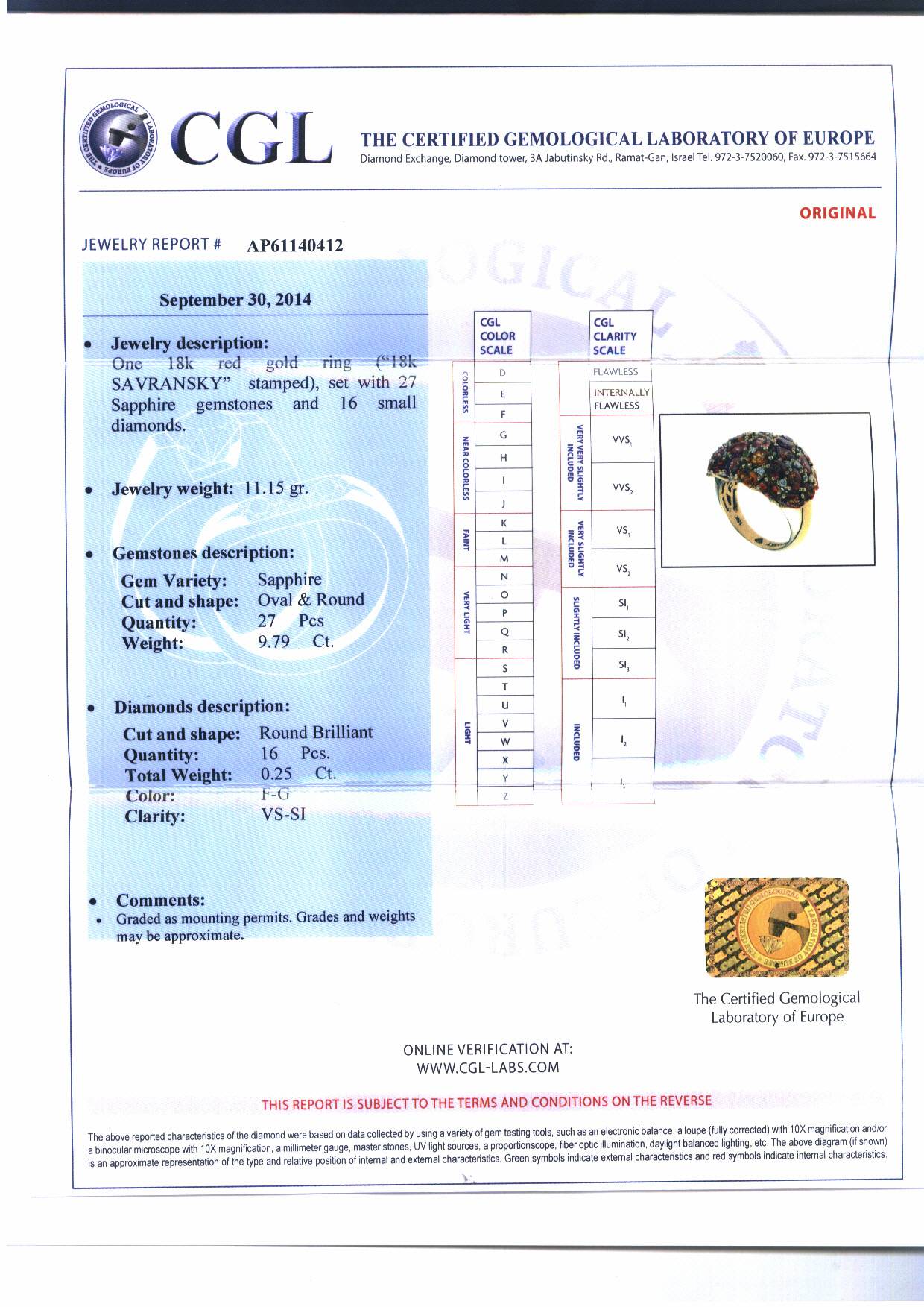 With your purchase, you will always receive a lifetime warranty, two Gemological Certificates- one for the center diamond as well as one for the finished piece, and an APPRAISAL certificate from Savransky Private Jeweler.