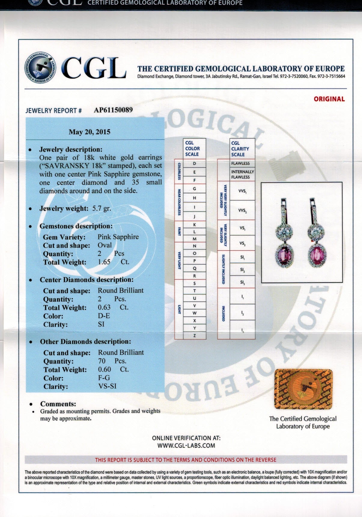 With your purchase, you will always receive a lifetime warranty, two Gemological Certificates- one for the center diamond as well as one for the finished piece, and an APPRAISAL certificate from Savransky Private Jeweler.