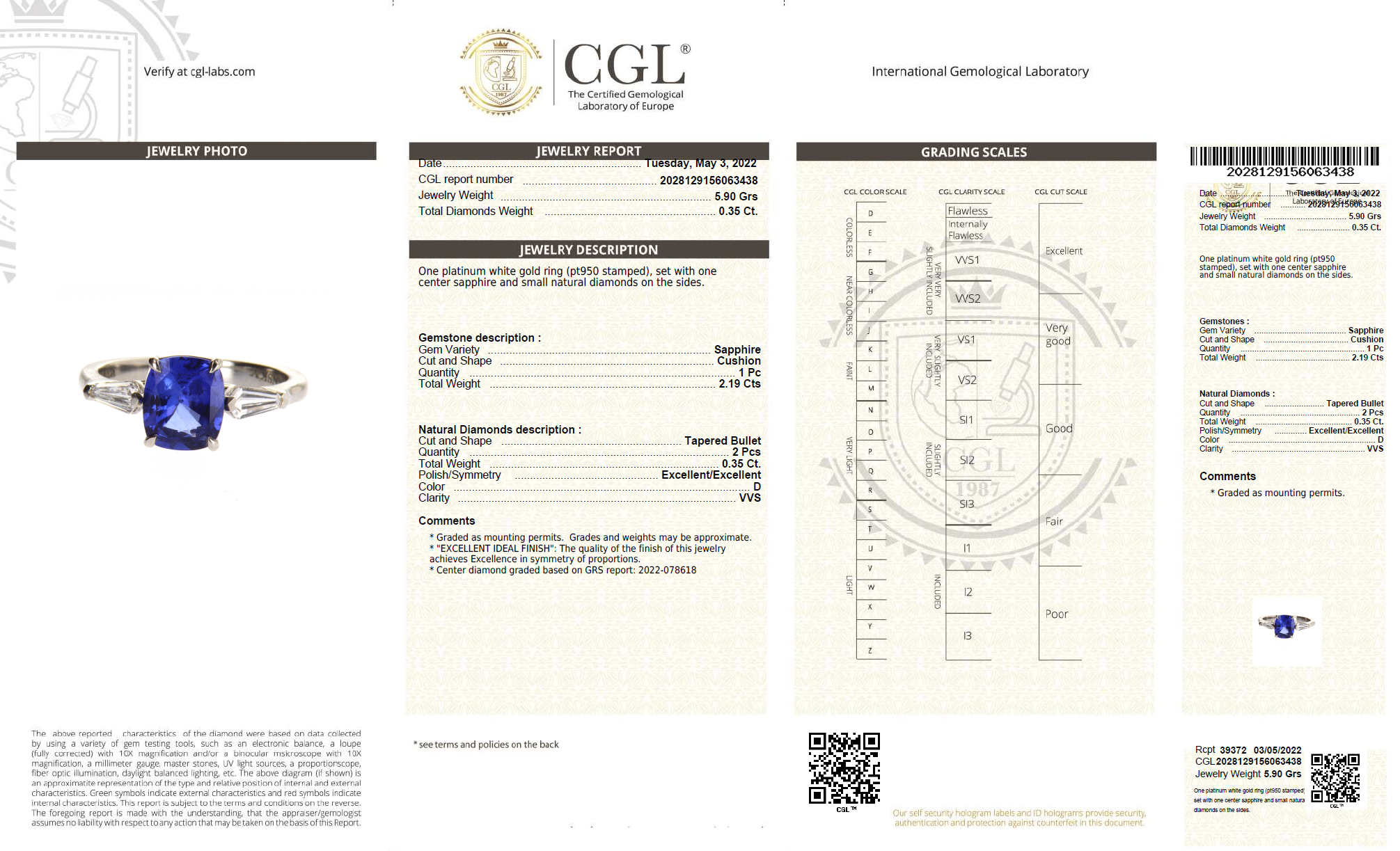 With your purchase, you will always receive a lifetime warranty, two Gemological Certificates- one for the center diamond as well as one for the finished piece, and an APPRAISAL certificate from Savransky Private Jeweler.