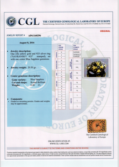With your purchase, you will always receive a lifetime warranty, two Gemological Certificates- one for the center diamond as well as one for the finished piece, and an APPRAISAL certificate from Savransky Private Jeweler.