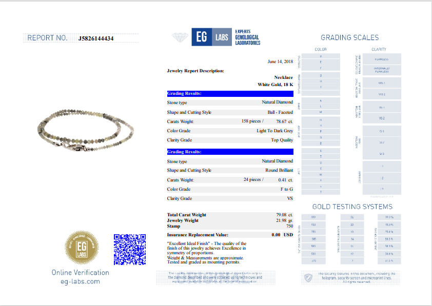 Grey Natural Diamonds Beaded Choker Necklace - 79 Carat