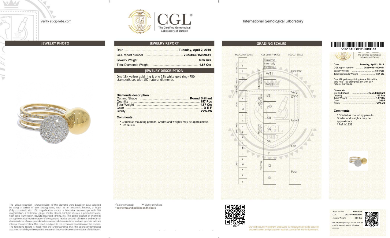 Two Tone Yellow and White Gold Combo Pave Bauble Ring