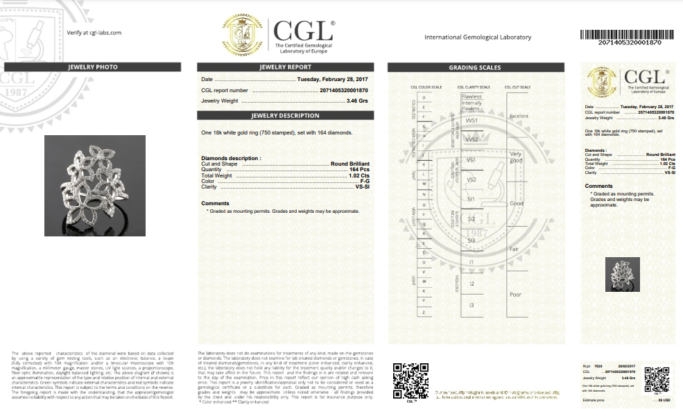 With your purchase, you will always receive a lifetime warranty, two Gemological Certificates- one for the center diamond as well as one for the finished piece, and an APPRAISAL certificate from Savransky Private Jeweler.